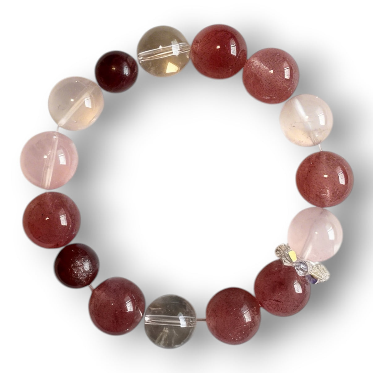 京都禅意・ストロベリークォーツ × ローズクォーツ × 白水晶 一点物ブレスレット