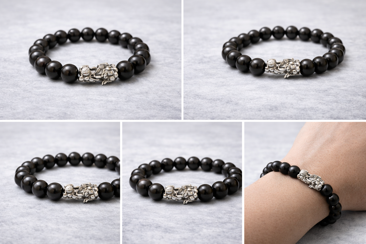 - 素材:天然黒曜石/純銀(貔貅)